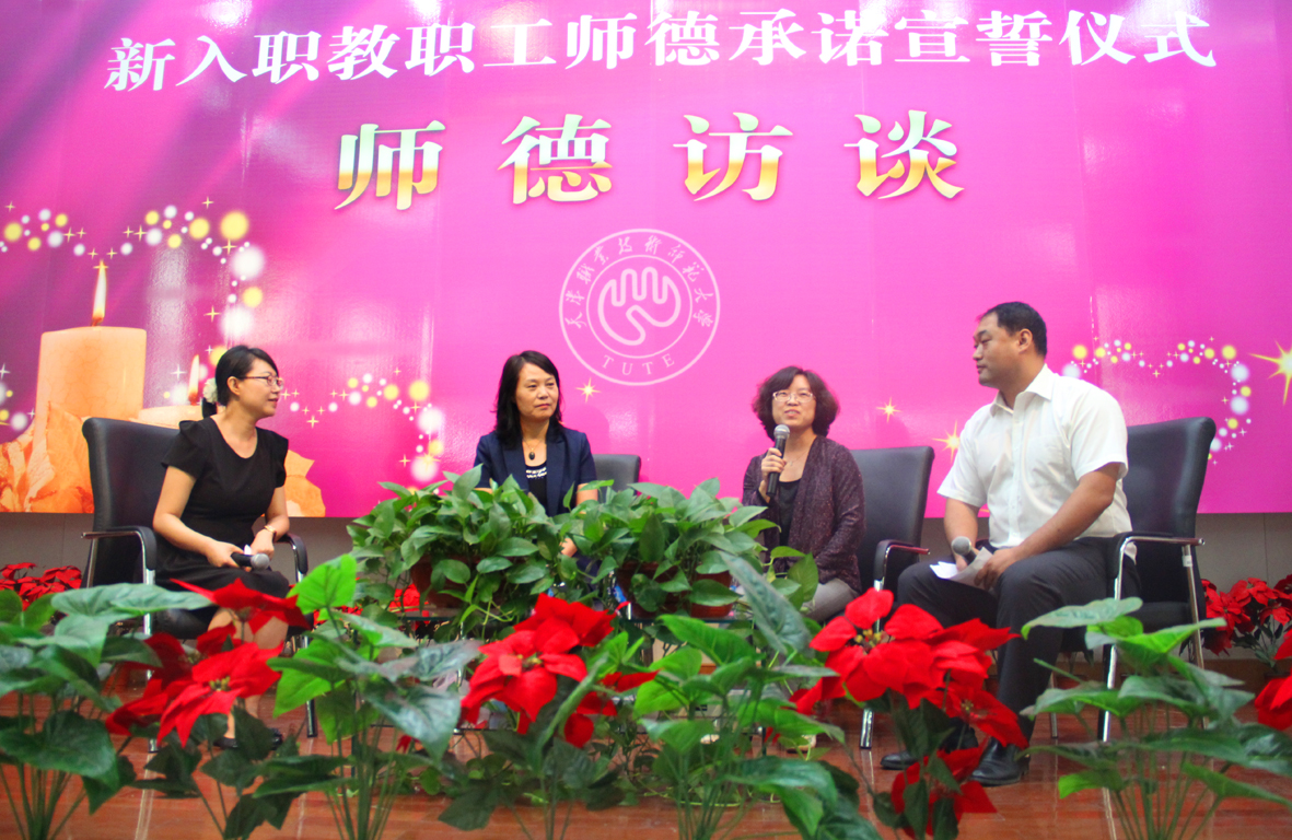 师德访道的贵宾是去自寰球技巧年夜赛中原研讨主旨缓年夜实教员、机器工程教院副传授赵巍教员、理教院党委副文告姜召海教员。3位教员别离联合各自多年去的教导教养理论,泛论了教书育人的体认;深刻领会了新期间的教死特征,建议了怎样用高明的师德感染战感化教死的干法战意会;回答了新教员工正在进职始期怎样面临逆境并应把握的极少基础教导办法等实质话题。时代,插播了1段段动人的瞅频,富裕展现了3位教员心系教导、吃苦研究、没有计得得的贡献、敬业肉体。贵宾的句句话语传送着正能量,鼓励战慰勉着正在场每实新教员。