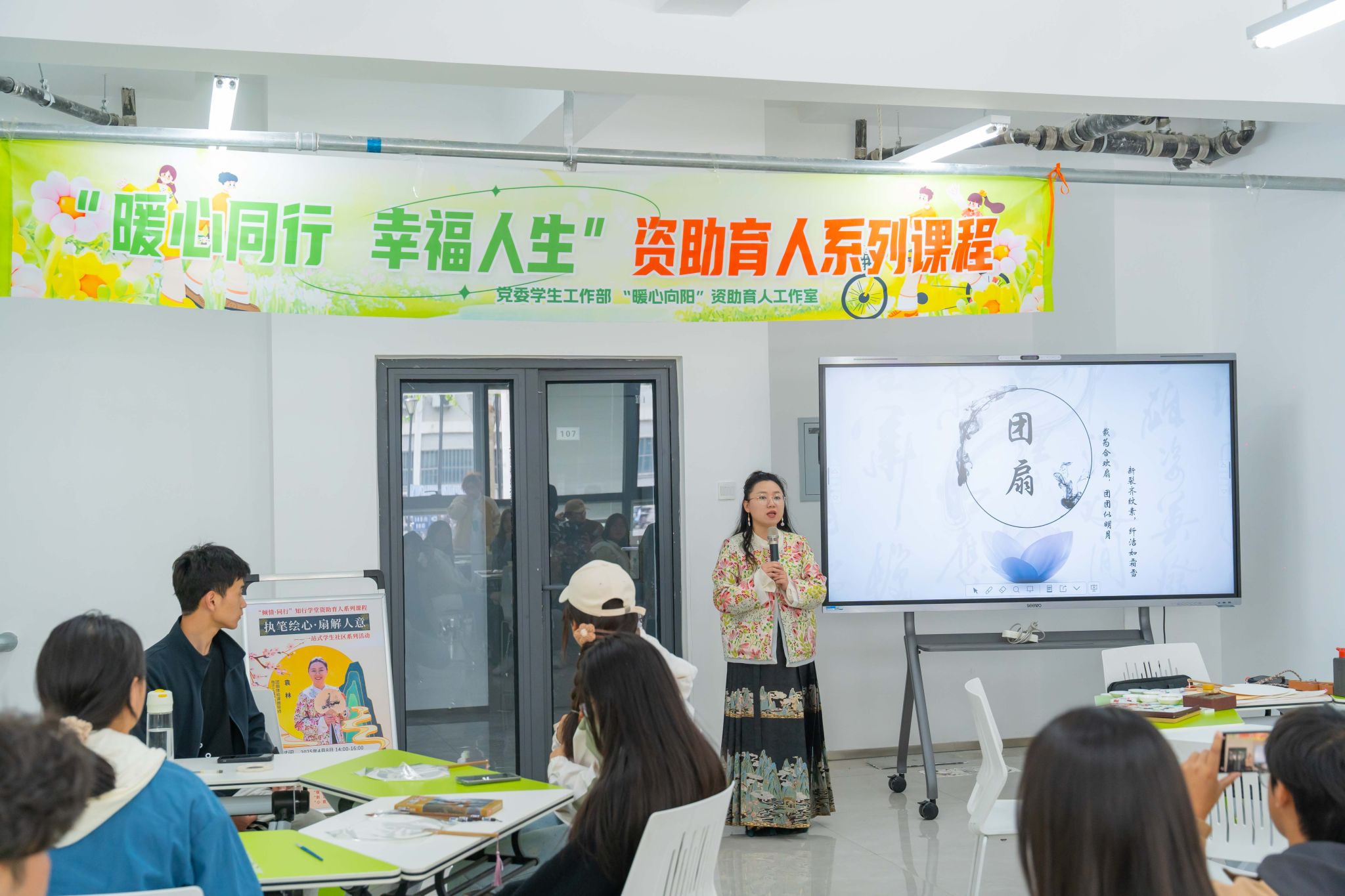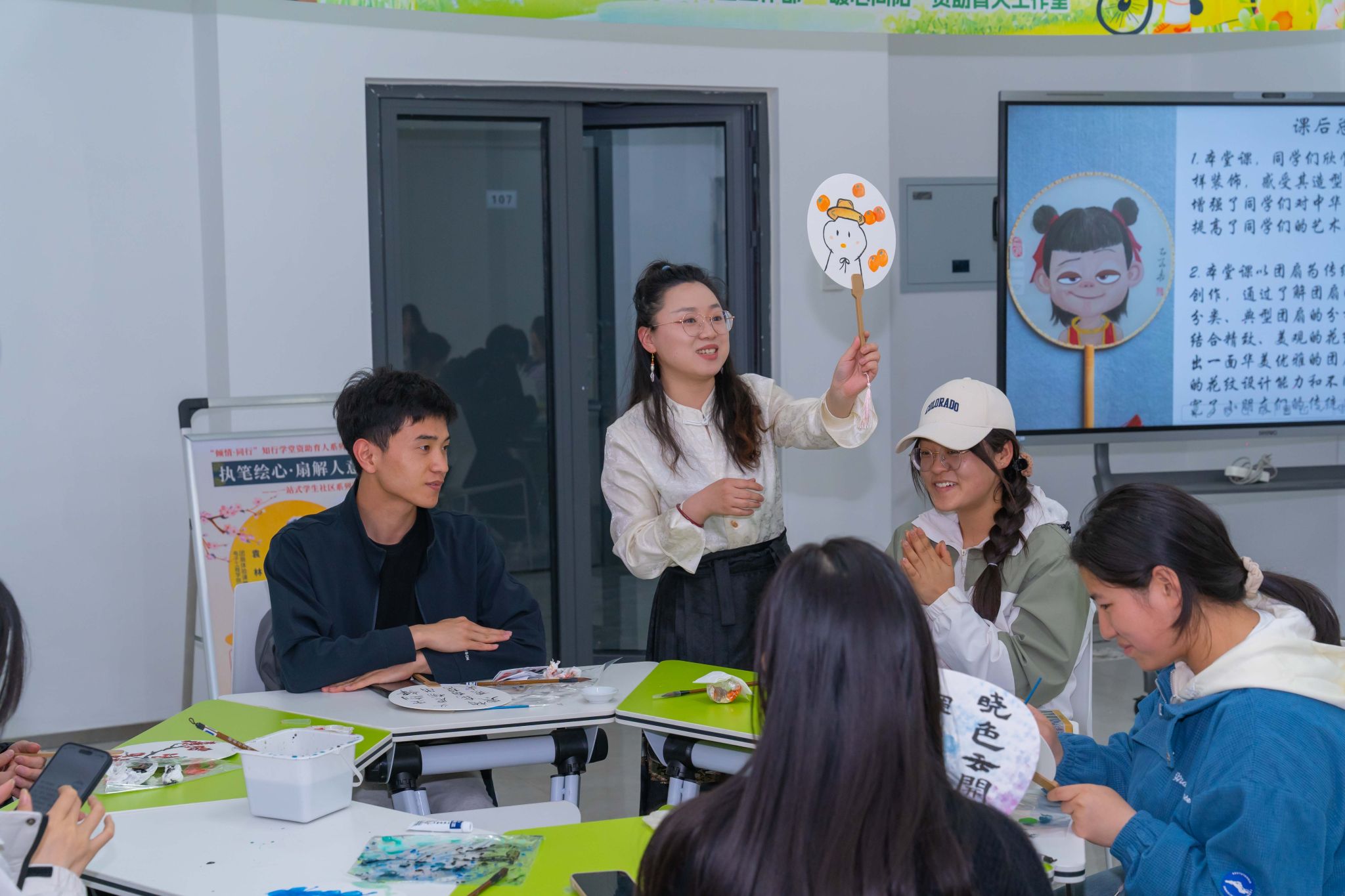 举动伊初,袁林身着华夏保守衣饰,以脚中画便的纨扇为媒,指导同砚们穿梭千年时间,道述纨扇启载的“团聚和睦”“浑正刚直”文明外延。从《簪花仕女图》《步辇图》中的“障扇”应用代价,再到唐宋书生骚人笔停的图画俗趣战当停前卫影戏《哪吒2》中“尔命由尔没有由天”的宏放志气,将汗青文脉取今世青年代价不雅培养美妙协调。正在理论步骤,袁林现场树模古板矿物颜色分配技法,求教教死利用碰色、留黑等邦绘古代画绘本领正在纨扇上独创,让青竹凌霜、白梅映雪等意象跃然扇里。现场同砚援笔勾画间,既领悟了“疏影横斜火浑浅”的西方好教意境,更领悟到非遗武艺中蕴藏的匠心肉体。